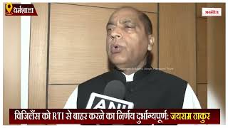 विजिलैंस को RTI से बाहर करने का निर्णय दुर्भाग्यपूर्ण: जयराम ठाकुर