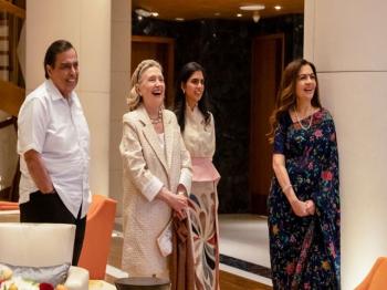 Mrs. Nita और Mr. Mukesh Ambani ने, Mrs. Isha Ambani के साथ अपने घर Hillary Clinton का किया welcome