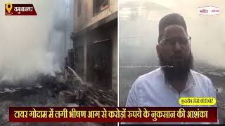 टायर गोदाम में लगी भीषण आग से करोड़ों रुपये के नुकसान की आशंका